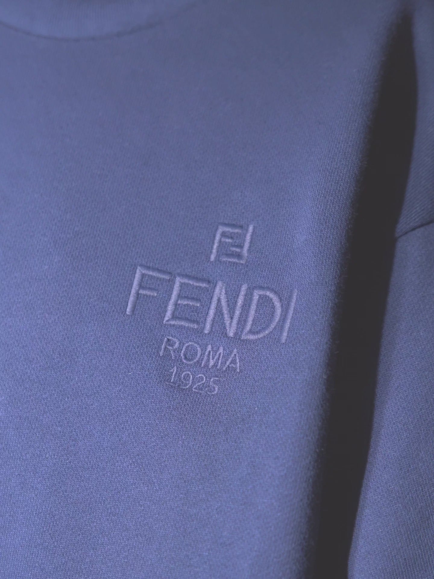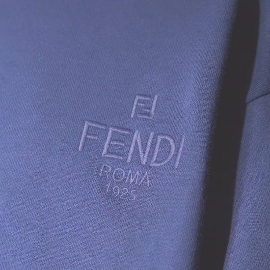 Colore: Blu Descrizione: Felpa blu del luxury brand Fendi Kids, realizzata in cotone leggermente felpato, a maniche lunghe, con girocollo, poslini e orlo a costine. È decorata con logo Fendi Roma 1925, per celebrare i 100 anni del brand, ricamato sul petto. Dettagli: 100% Cotone. Lavare a 30°C.