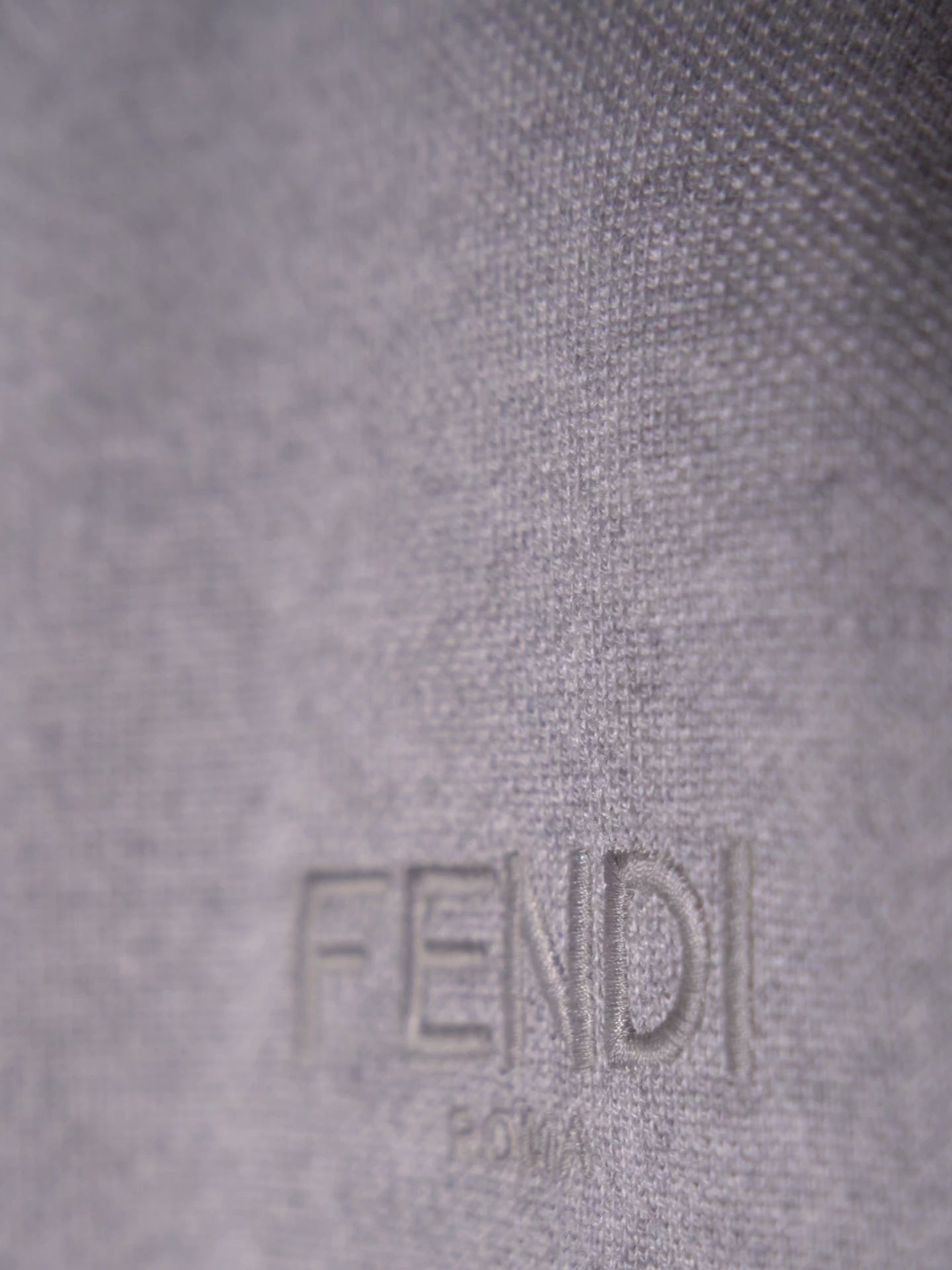 Colore: Grigio Descrizione: Maglione grigio melange del luxury brand Fendi Kids, realizzato in lana, con maniche lunghe, girocollo, polsini e orlo a costine, spacchi laterali sul fondo con dettaglio con iconica FF color tabacco. È decorata con logo Fendi Roma, ricamato sul petto. Made in Italy Dettagli: 100% Lana. Lavare a mano.