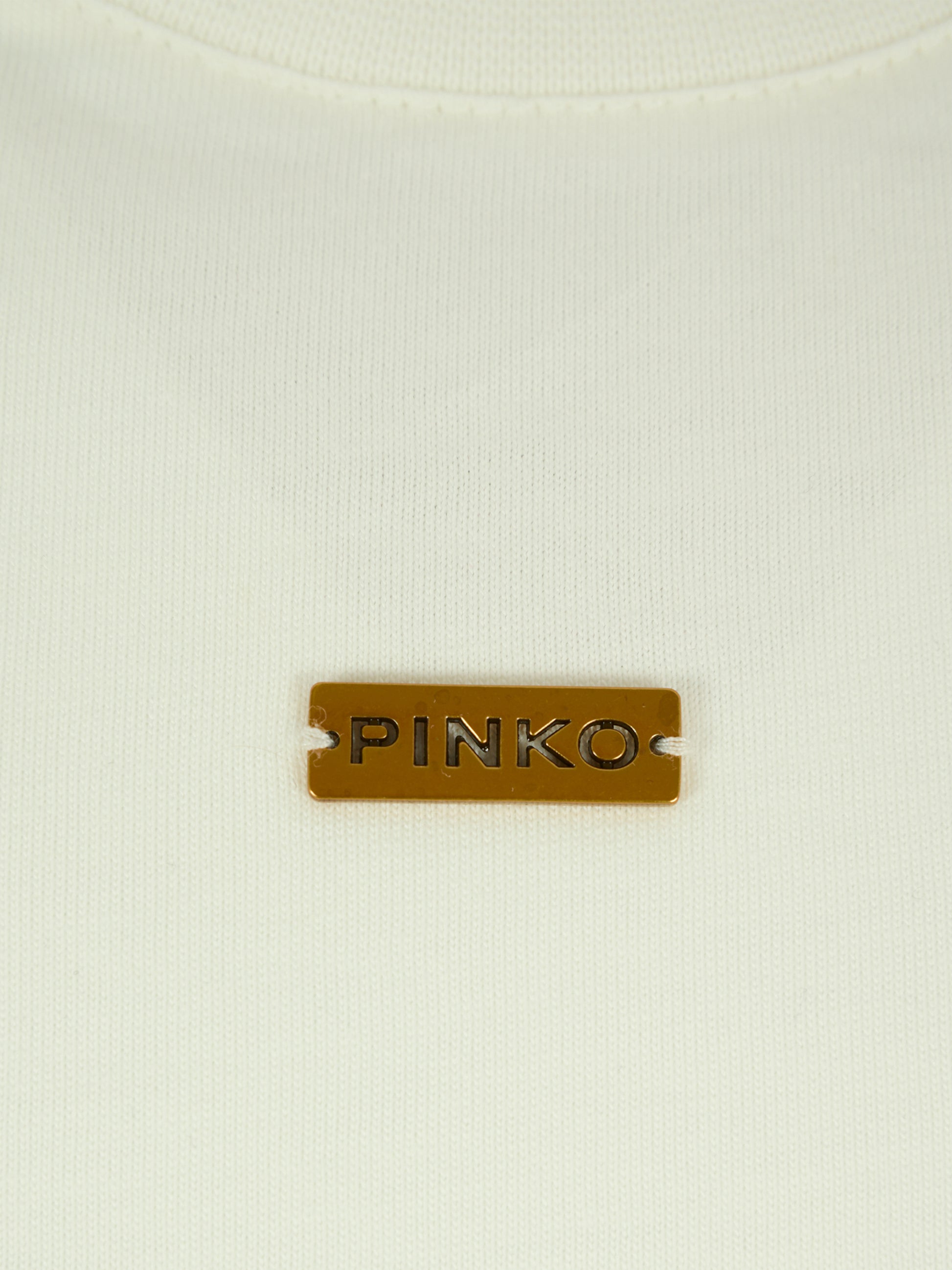 Colore: Avorio Descrizione: T-shirt crop avorio a maniche lunghe, con girocollo a costine e laccetti sui lati. È decorata con patch logato in metallo sulla parte anteriore. Made in Italy Dettagli: 100% Cotton. Lavare a 30°C.