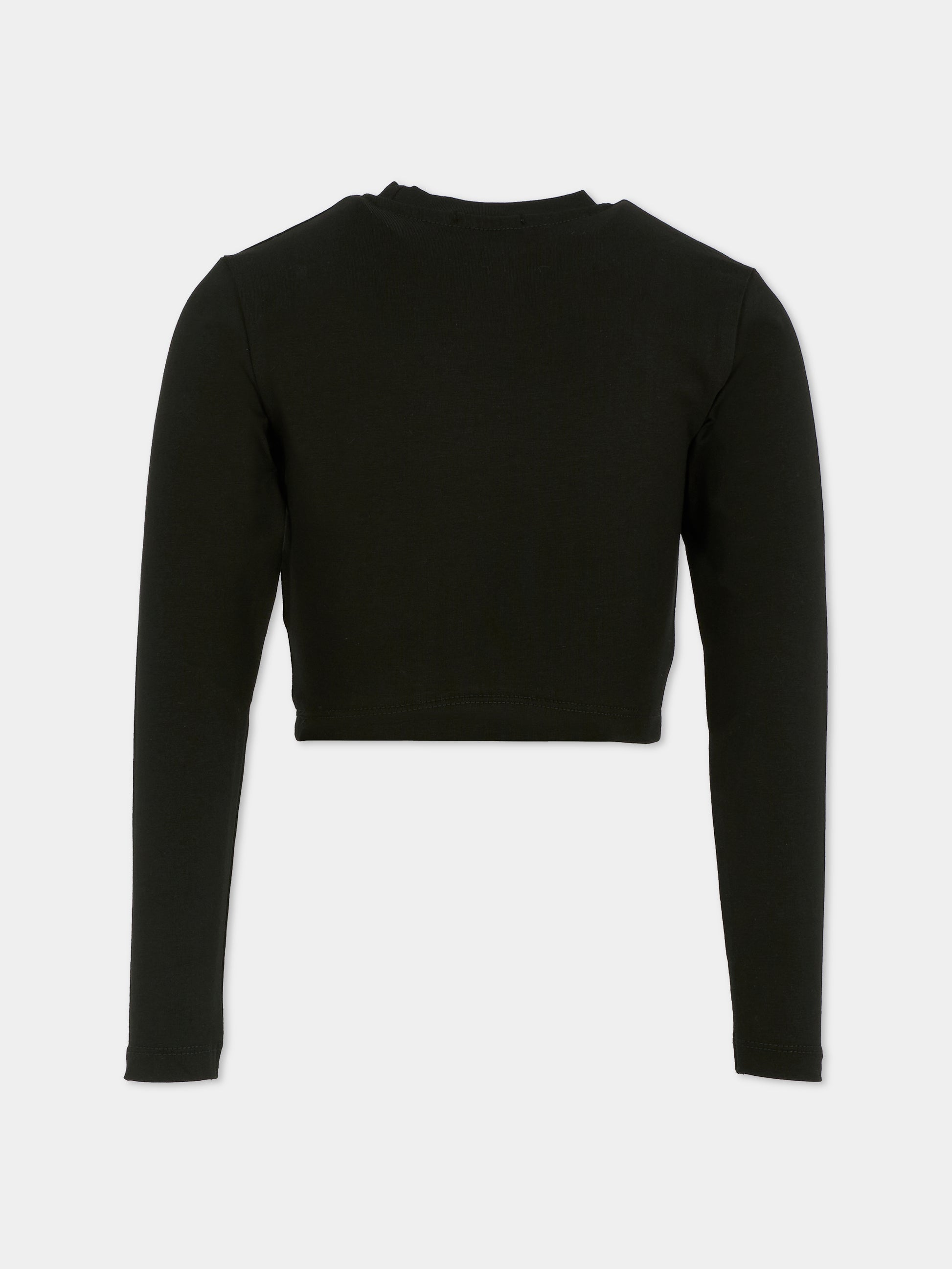 Black crop t-shirt for girl with logo