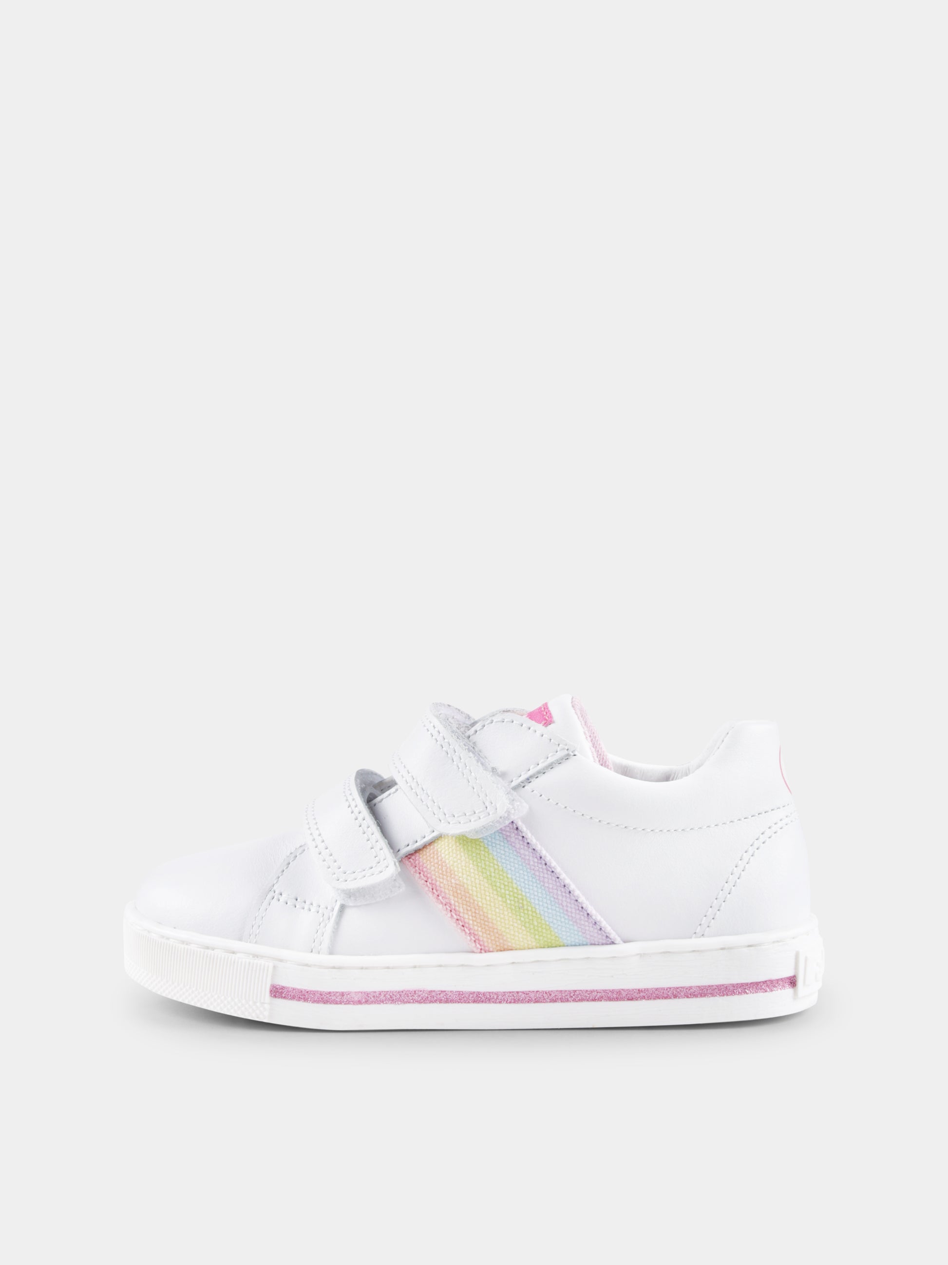 White sneakers for baby girl and girl with rainbow