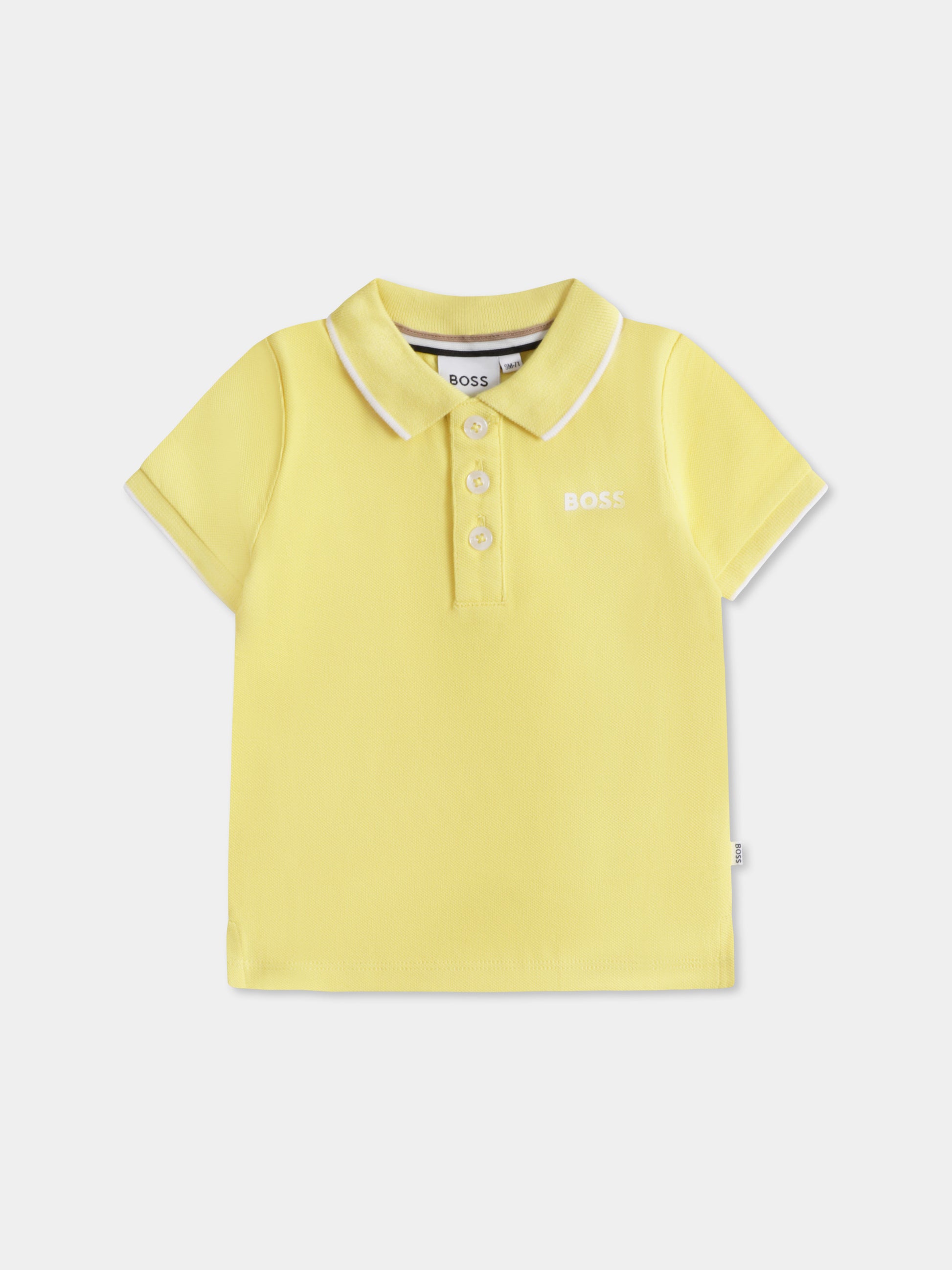 Colore: Gialla Descrizione: Polo gialla in piquet di cotone, a maniche corte, con colletto a punta con profili bianco e chiusura frontale con bottoni. È decorata con logo bianco sul petto. Dettagli: 100% Cotone. Lavare a 30°C.