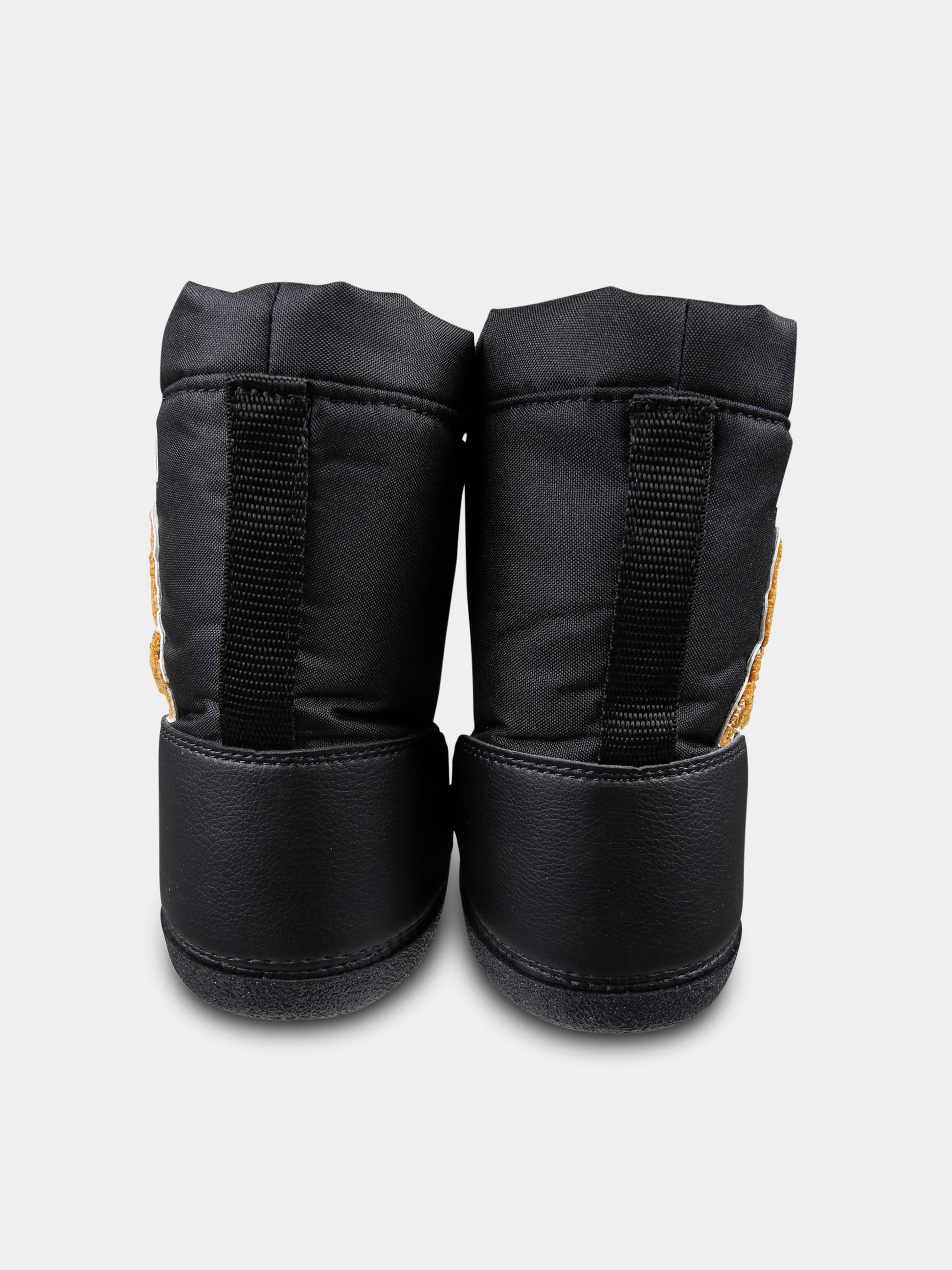 Colore: Nero Descrizione: Stivali da neve neri, con suola in gomma, interno in morbido shearling e coulisse regolabile sul davanti. Sono decorati con Teddy Bear in spugna e logo sui lati. Made in Italy Dettagli: 50% Tessile, 50% Sintetico.