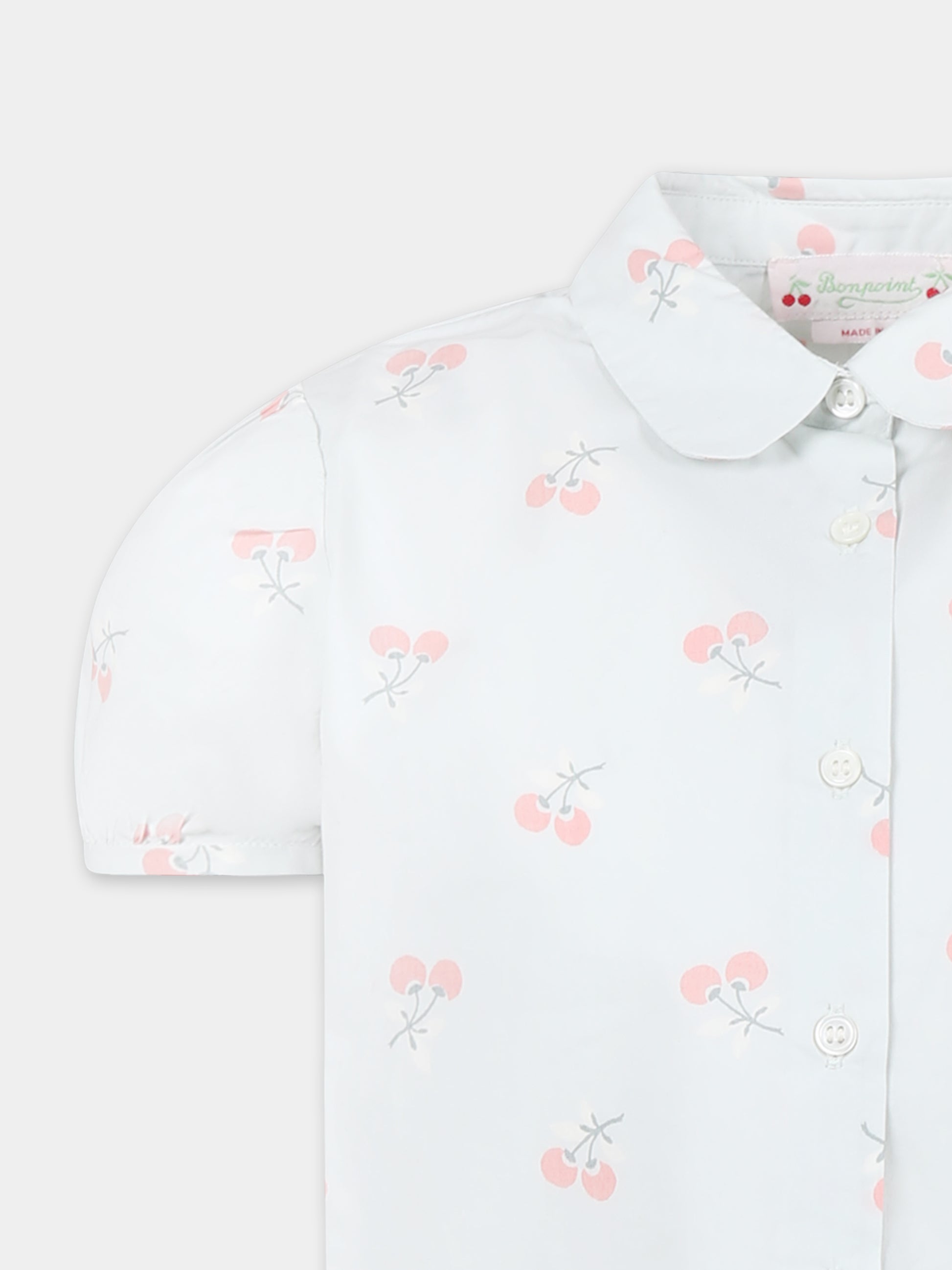 Light blue shirt for girl with cherries