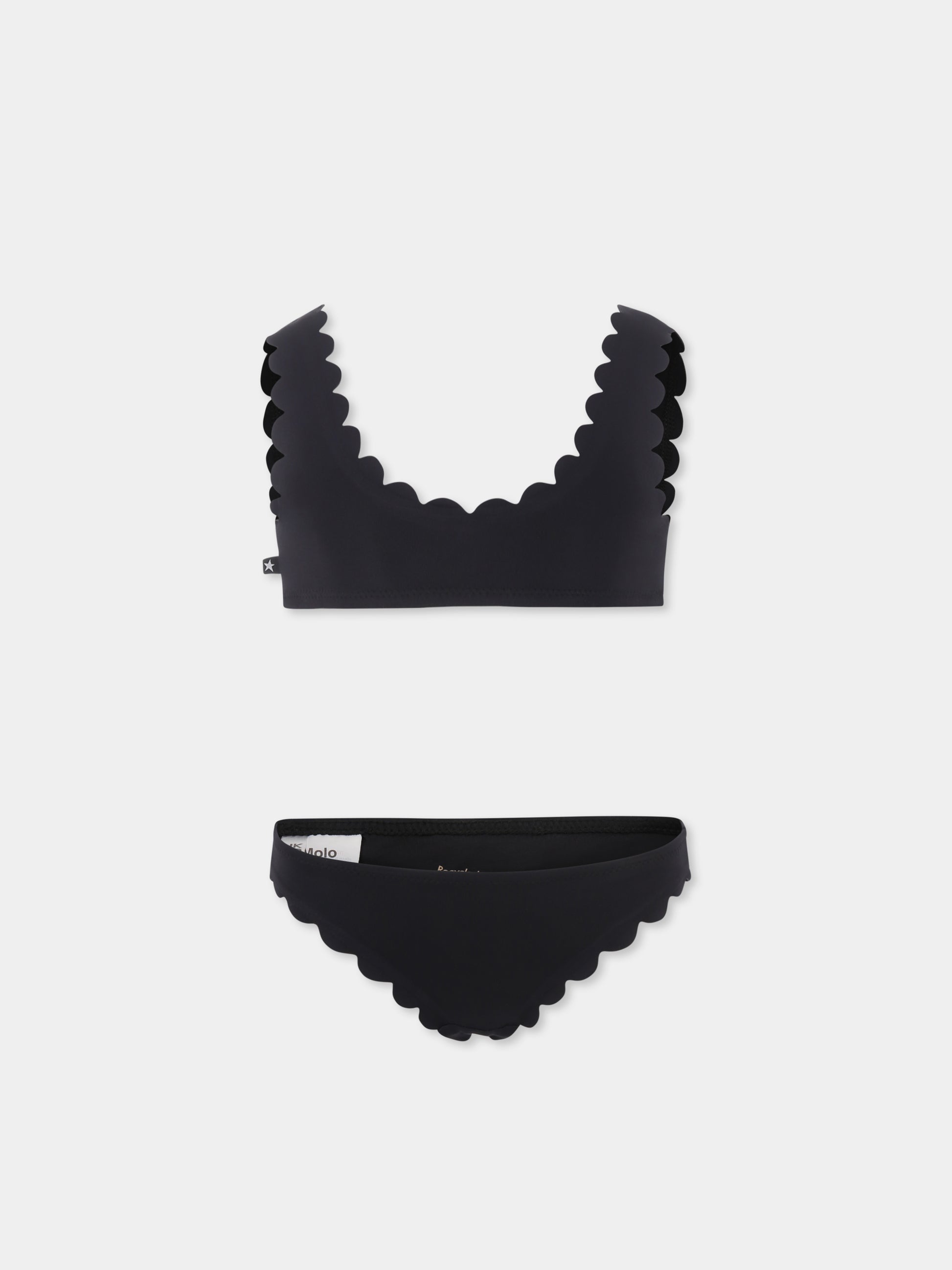 Colore: Nero Descrizione: Bikini nero composto da top e slip da bagno, con profili smerlati; realizzato in parte con poliestere riciclato. Dettagli: 80% Poliestere riciclato, 20% Elastan. Lavare a 30°C.