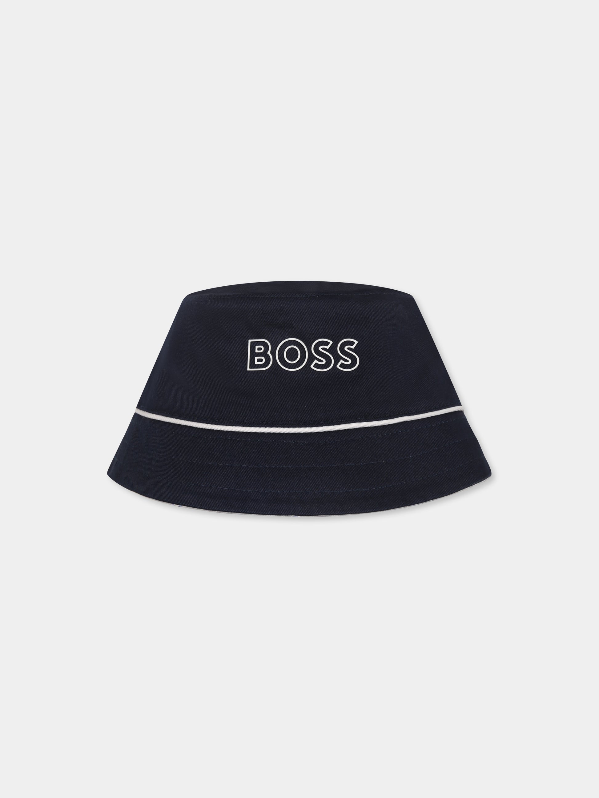 Reversible blue cloche for baby boy