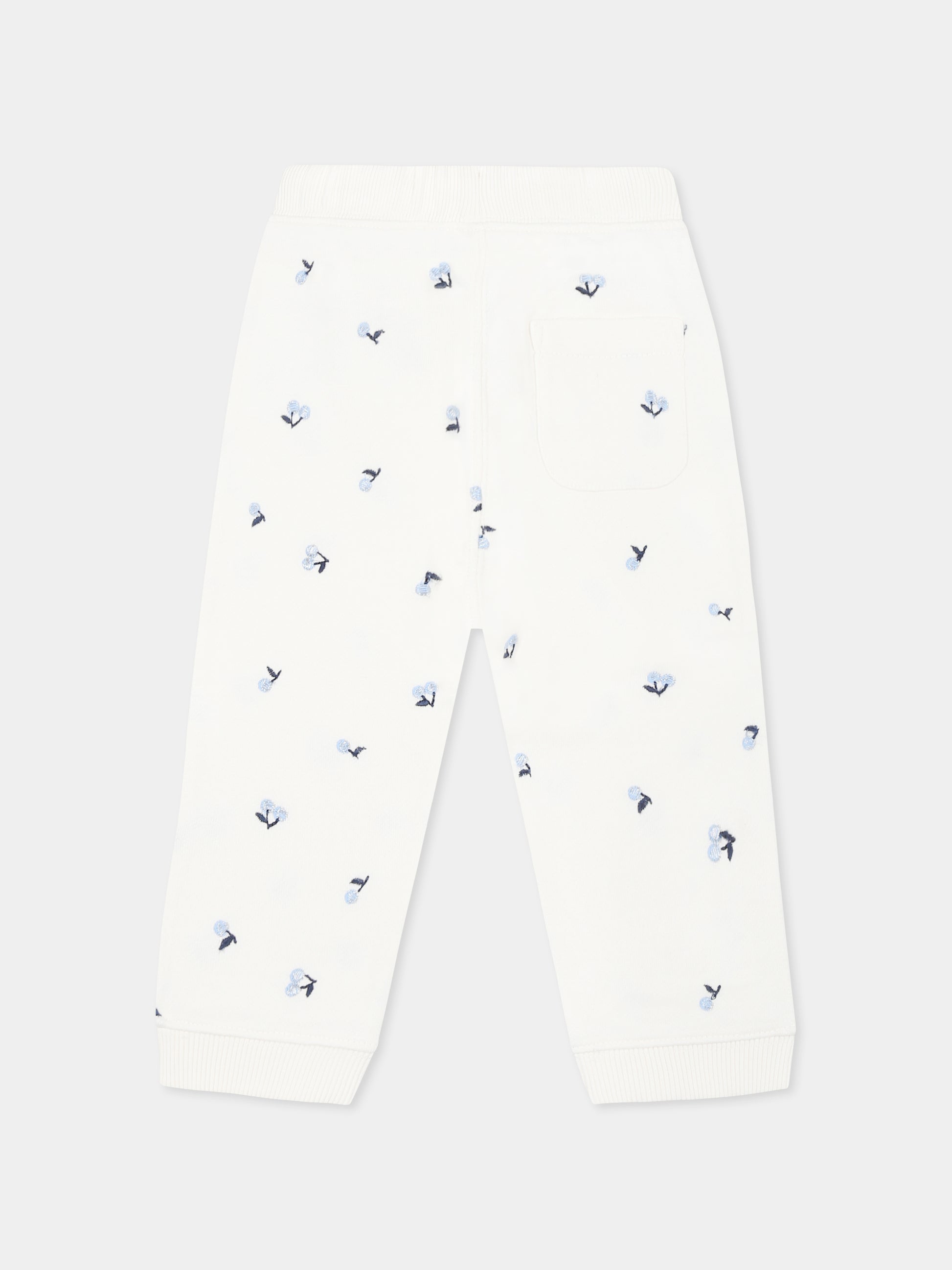 Colore: Avorio Descrizione: Pantaloni avorio in cotone garzato, con vita elasticizzata, coulisse e tasca sul retro. Sono decorati con iconiche ciliegie ricamate all-over. Dettagli: 100% Cotone. Lavare a 30°C.