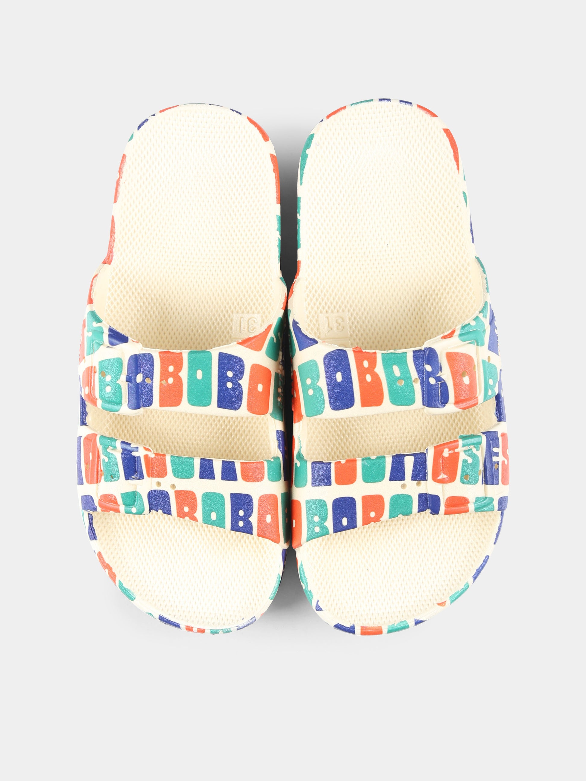 Colore: Multicolor Descrizione: Ciabatte multicolor in gomma, con due fasce; sono decorate con logo multicolor all-over. È una collaborazione esclusiva Freedom Moses x Bobo Choses. Dettagli: 100% Poliuretano.