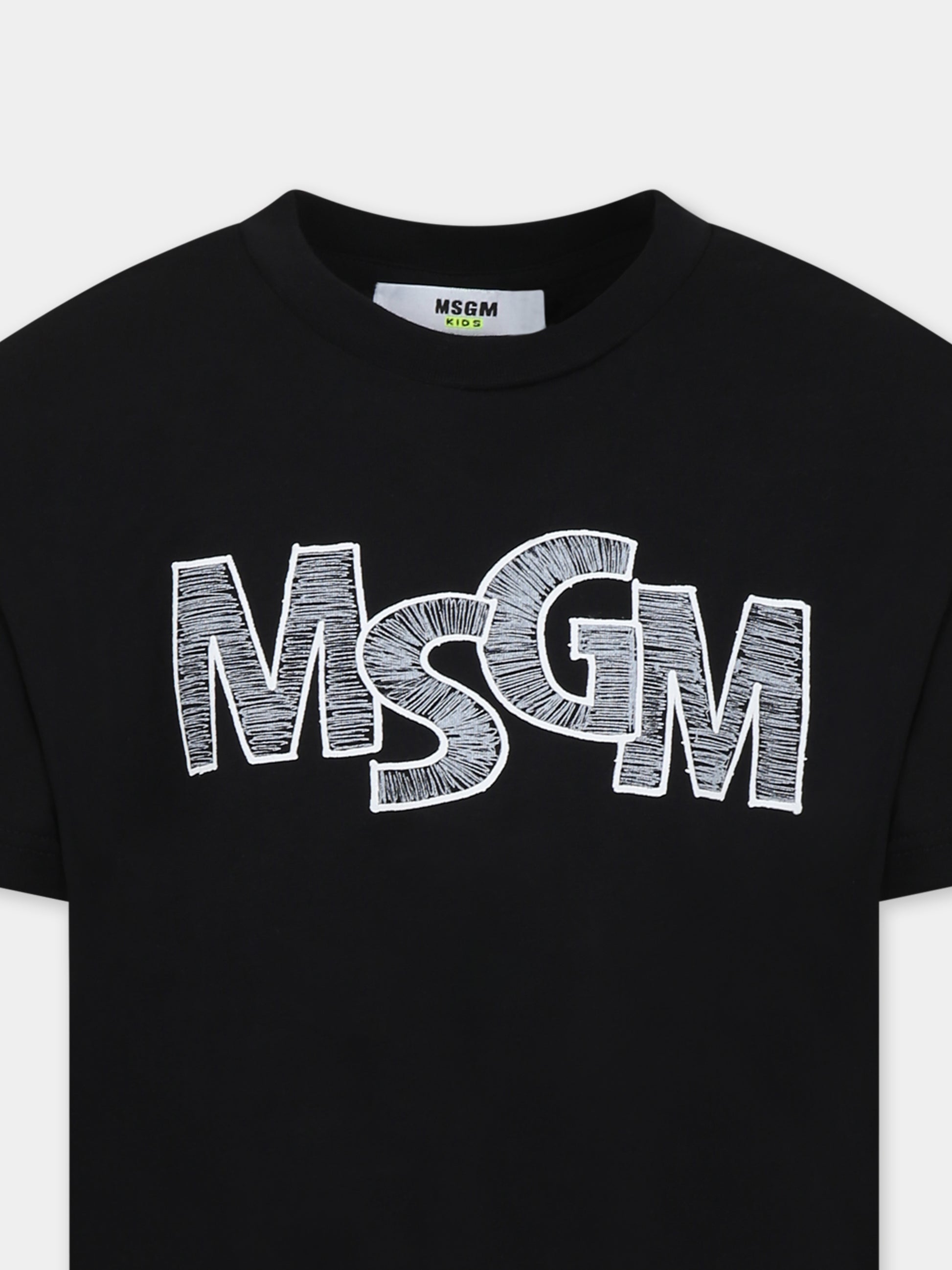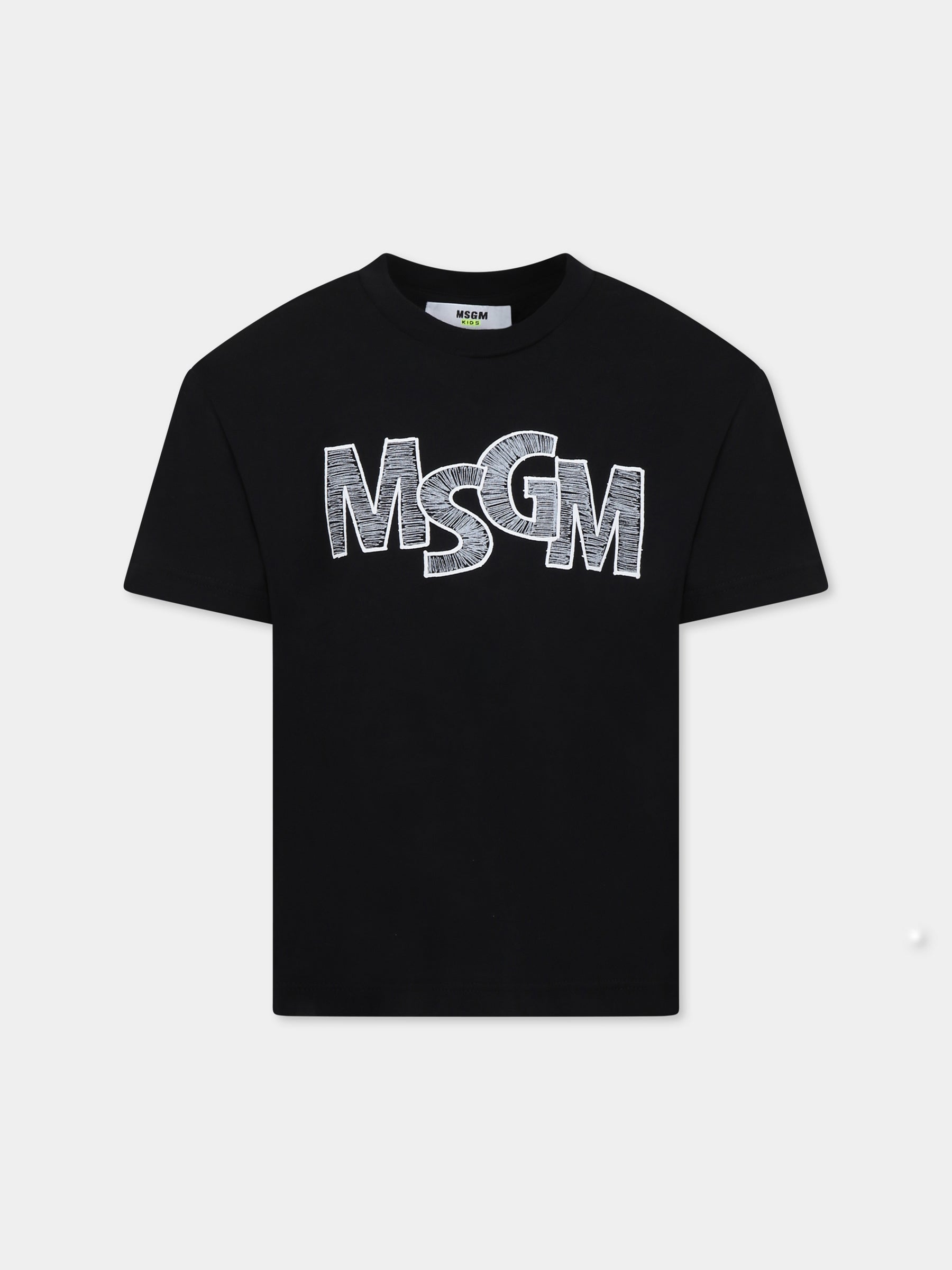 Colore: Nero Descrizione: T-shirt nera in cotone, con maniche corte e girocollo a costine. È decorata con logo MSGM stampato sulla parte anteriore. Made in Italy Dettagli: 100% Cotone. Lavare a 30°C.