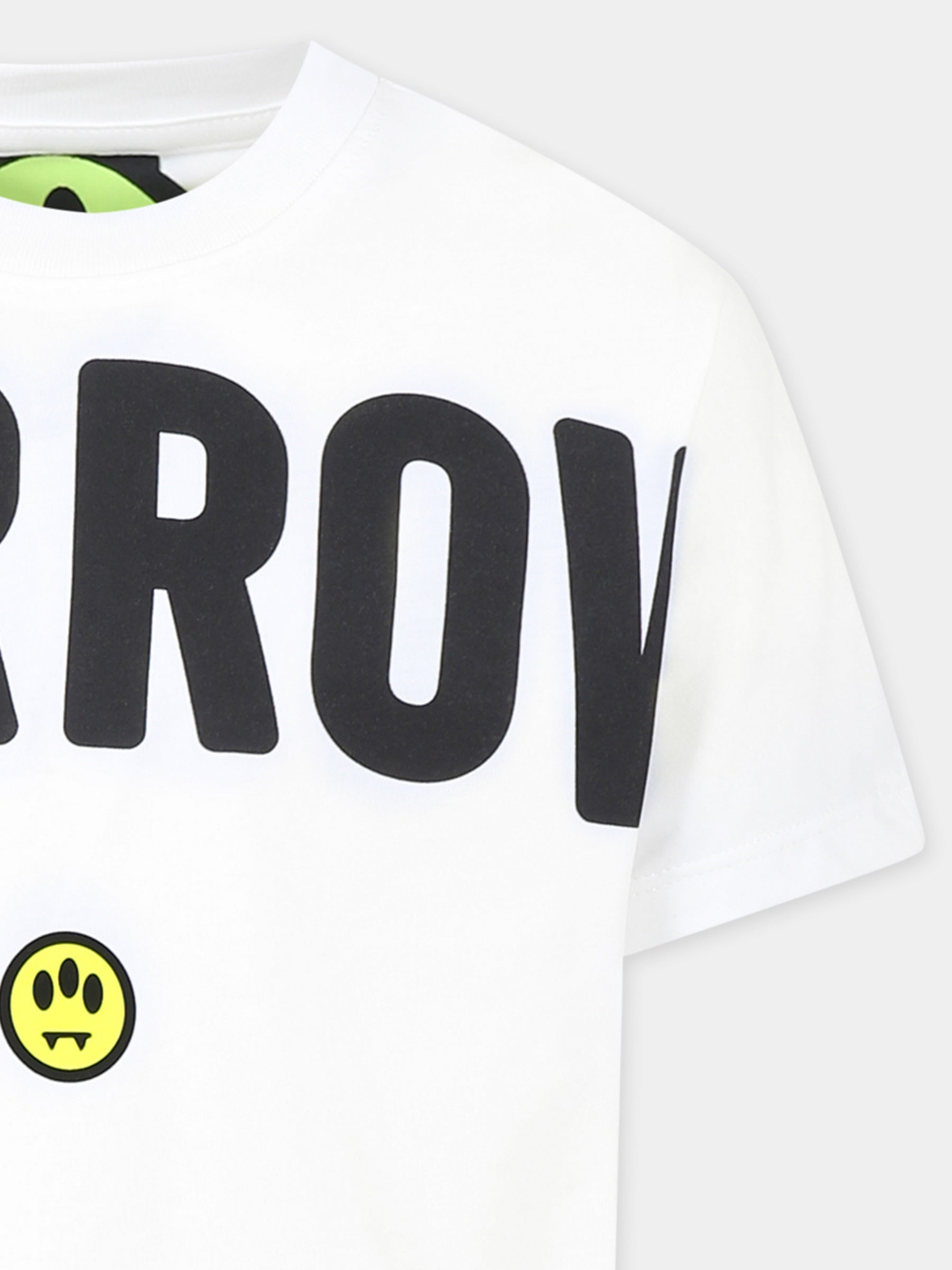 Colore: Bianco Descrizione: T-shirt bianca in cotone, con maniche corte e girocollo a costine. È decorata con logo e iconico smiley giallo sul davanti. È dotata di portachiavi giallo logato. Made in Italy Dettagli: 100% Cotone. Lavare a 30°C.